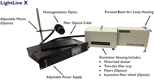 | -PM90 | 100-8060 | A stand/fiber holder designed to hold the LightLine optical illumination delivery fiber. Fiber holder position is adjustable for vertical and horizontal illumination and any angle in-between. Includes a sturdy baseplate. |